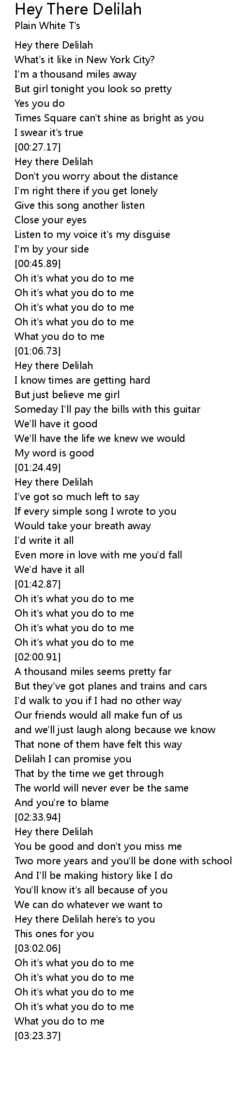 Song and lyrics for hey there delilah.. Hey There Delilah Lyrics are a subject that is being searched for and liked by netizens now. You can Download the Hey There Delilah Lyrics here. Get all royalty-free pix. Plain White T's - Hey There Delilah (Lyrics), Plain White T's - Hey There Delilah (Lyrics) Turn on notifications to stay updated with new uploads! • Follow Plain White T's .